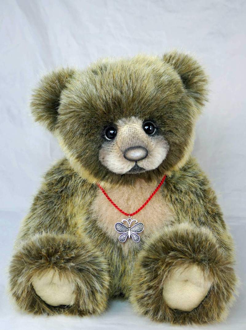 „Mummi“, Unikat, 27 cm, hochwertiges Webfell und Woll-Schnauze, 5-fach gegliedert, Suédine-Pfoten, gefilzte Augenlider.