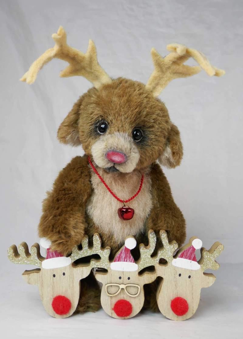 Rentier „Ranju“, Unikat, 22 cm, hochwertiges Webfell und Alpaka, 5-fach gegliedert, Suédine-Fußsohlen, gefilzte Augenlider, Filz-Geweih.