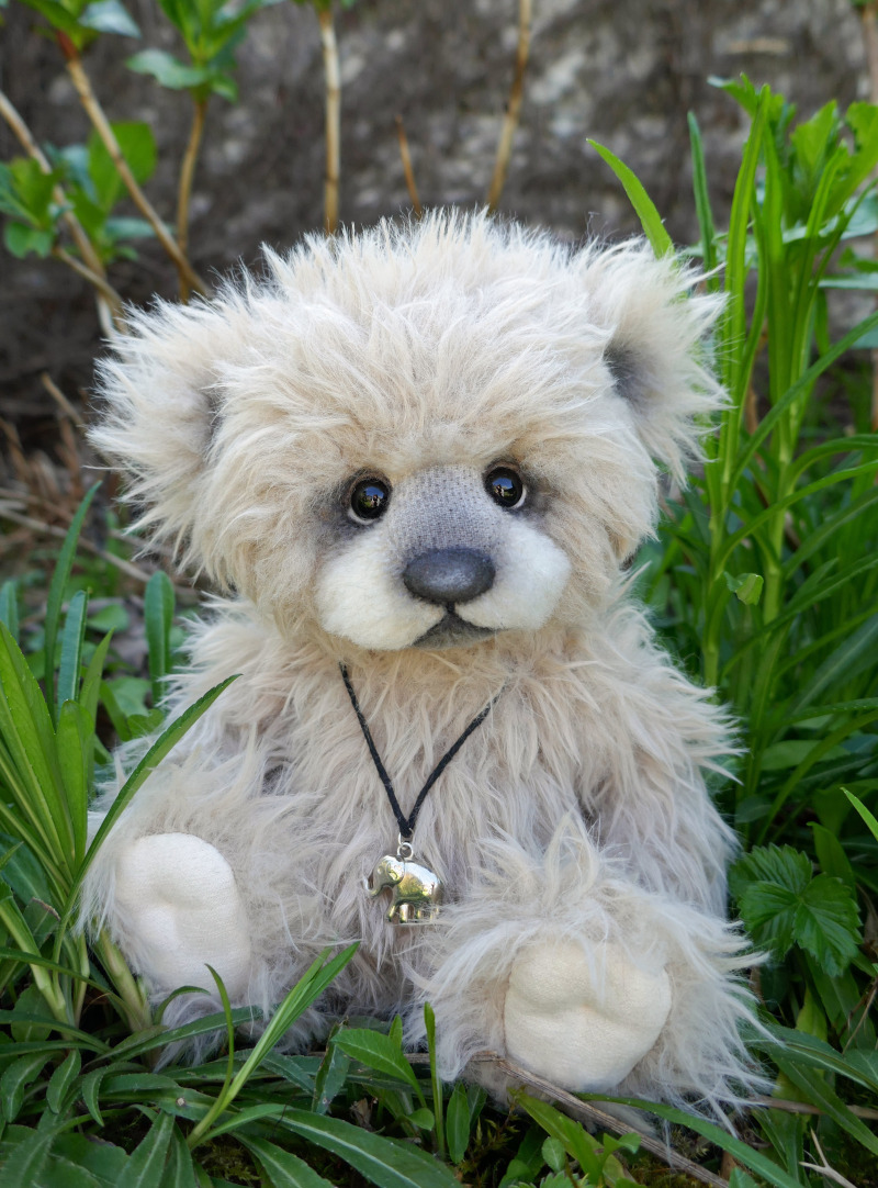 „Marlin“, Unikat, 20 cm, Mohair und Alpaka, 5-fach gegliedert, Suédine-Pfoten, gefilzte Augenlider.